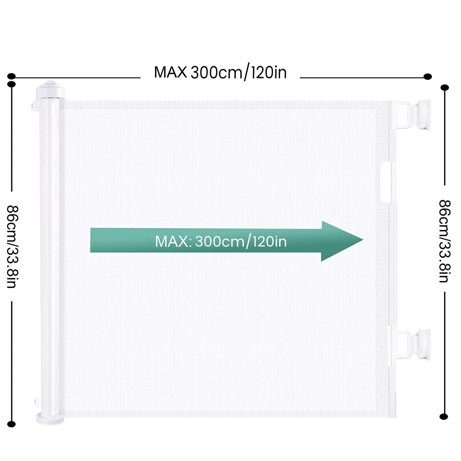 This extra retractable baby gates can be extended up to 3m wide and 86cm tall. Mesh can be completely retracted away when not in use.